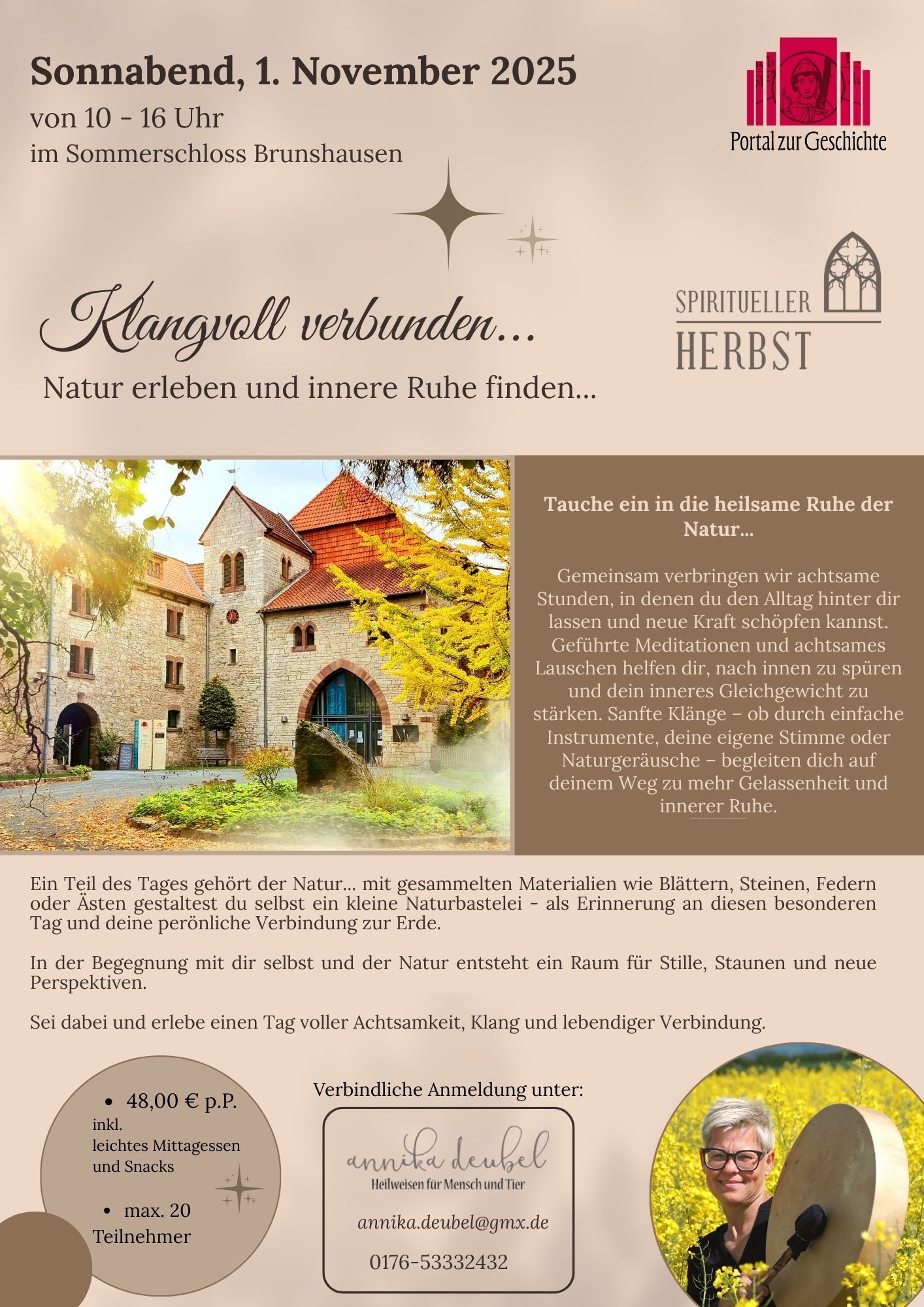Dieses Jahr kehrt die Roswithaandacht an die Wiege des Gandersheimer Frauenstifts zurück: das ehemalige Klostergelände Brunshausen. Der spirituelle Rundgang mit Zuhören, aktiven Abschnitten und gemeinsamer Andacht lässt Gehörtes und Gesehenes mit Bekanntem verknüpfen. Im gemeinsamen Gespräch können Fragen geklärt werden. Lassen Sie sich von den Ideen und Sichtweisen der frühmittelalterlichen Literatin Roswitha von